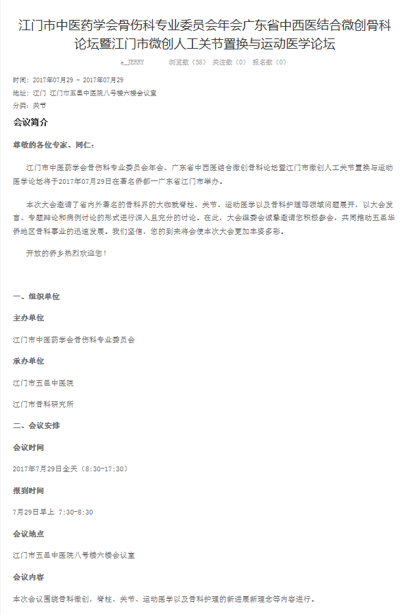 江門市中醫藥學會骨傷科專業委員會年會廣東省中西醫結合微創骨科論壇暨江門市微創人工關節置換與運動醫學論壇