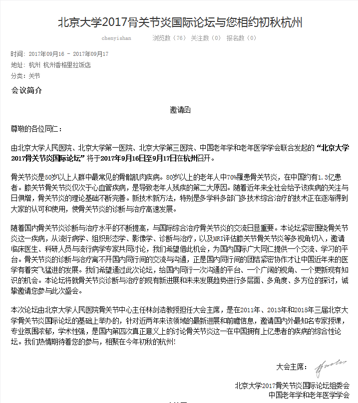 北京大學2017骨關節炎國際論壇